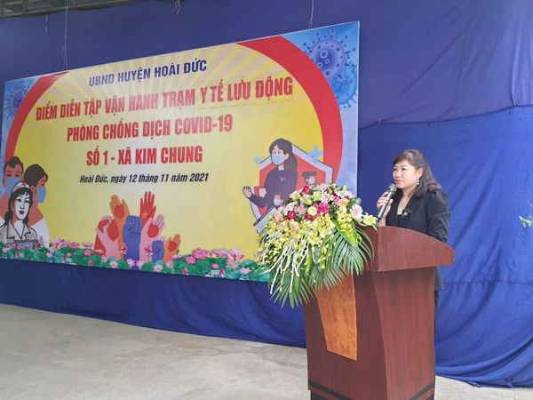 Sáng 12/11/2021, UBND huyện Hoài Đức tổ chức diễn tập triển khai mô hình Trạm Y tế lưu động tại điểm Y tế thôn Lai Xá xã Kim Chung.